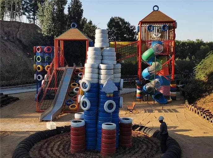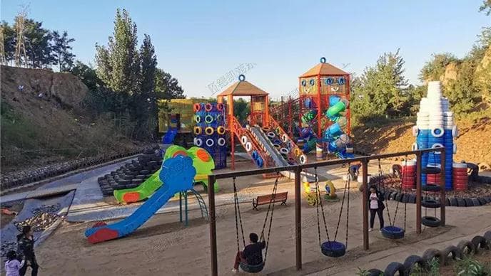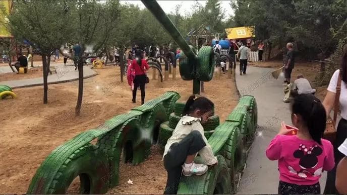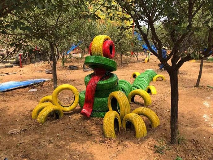 也許你從未想過,廢舊的輪胎除了當做垃圾處理,還能做什么?然而在山東青州市王府南陽河親子樂園,就坐落著一個由四川德凱世界游樂設備有限公司通過廢舊輪胎經過加工組裝而成的輪胎主題樂園。這里有栩栩如生的動物造型、有色彩絢爛的游樂設施造型。就讓我們跟隨攝影師的腳步,一起領略輪胎主題樂園的美景吧!