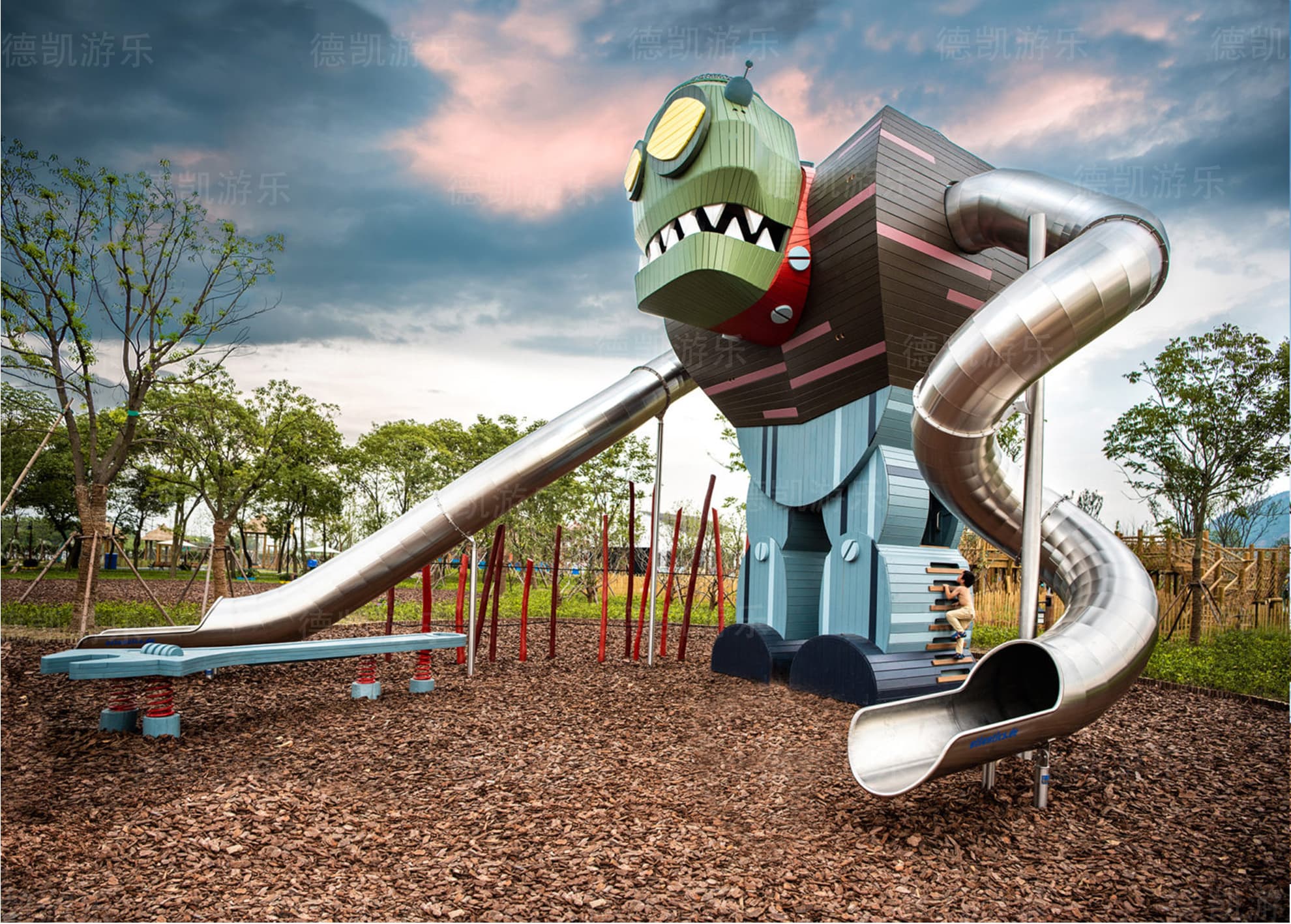 德凱游樂趣味滑梯系列游樂設備,電話:028-82621877,13981989058。兒童滑梯材質分不銹鋼、木質、全塑、PE板,游樂設備大小均可根據客戶需求及場地量身定制。大型兒童組合滑梯功能多、玩法新、設計前衛等是投資兒童游樂場/公園理想設備。認準德凱游樂,低投入,高回報。